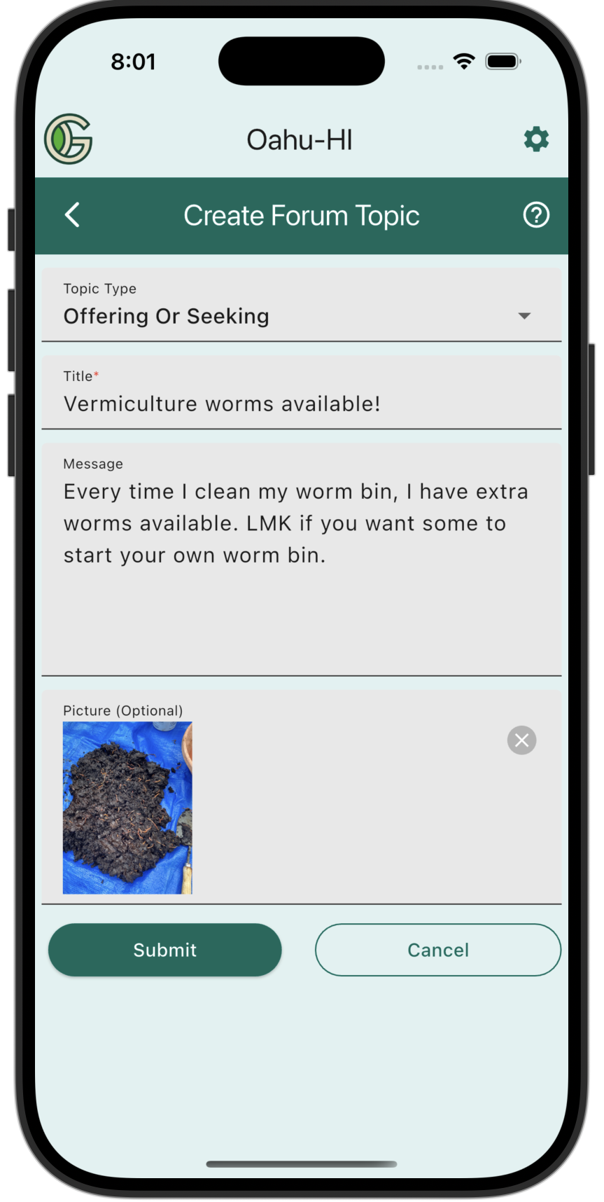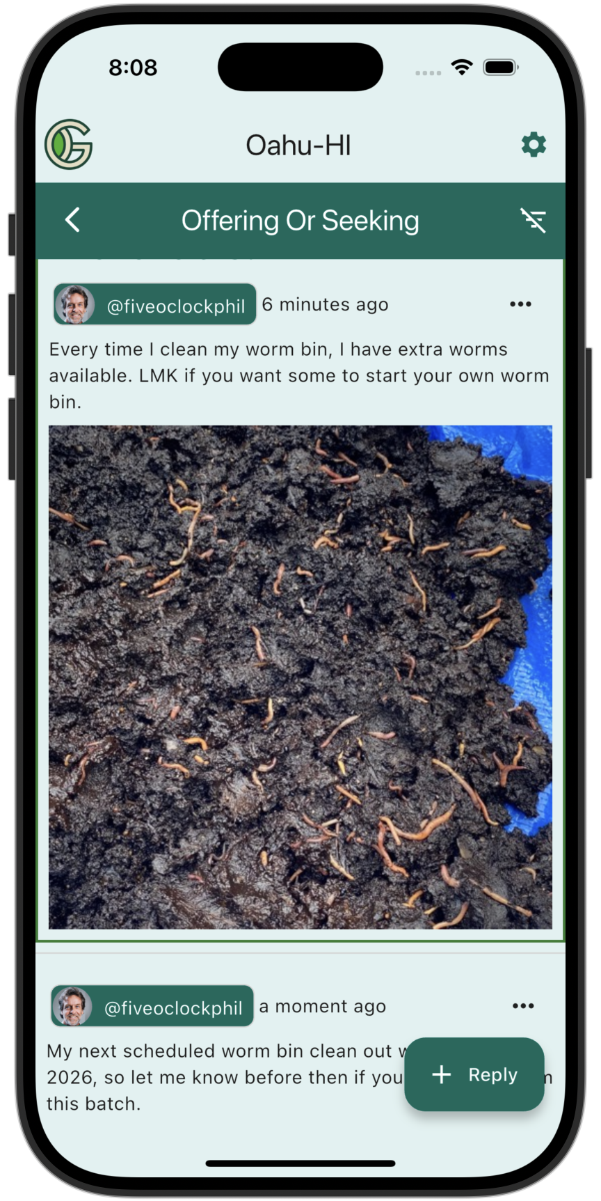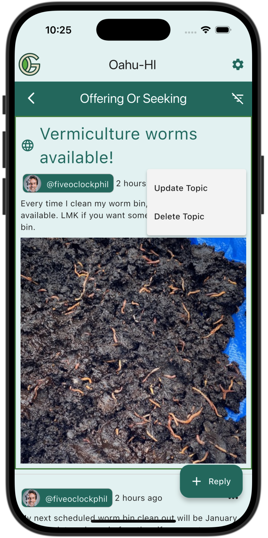 - Offering or Seeking. This topic type enables you to offer (or seek) produce, seeds, or other gardening resources (tools, soil, etc.)