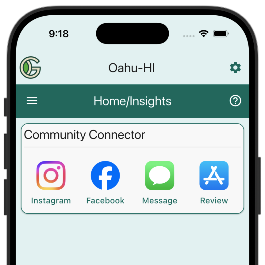 The Community Connector Insight Widget provides four links to help you engage with the GeoGardenClub community:
