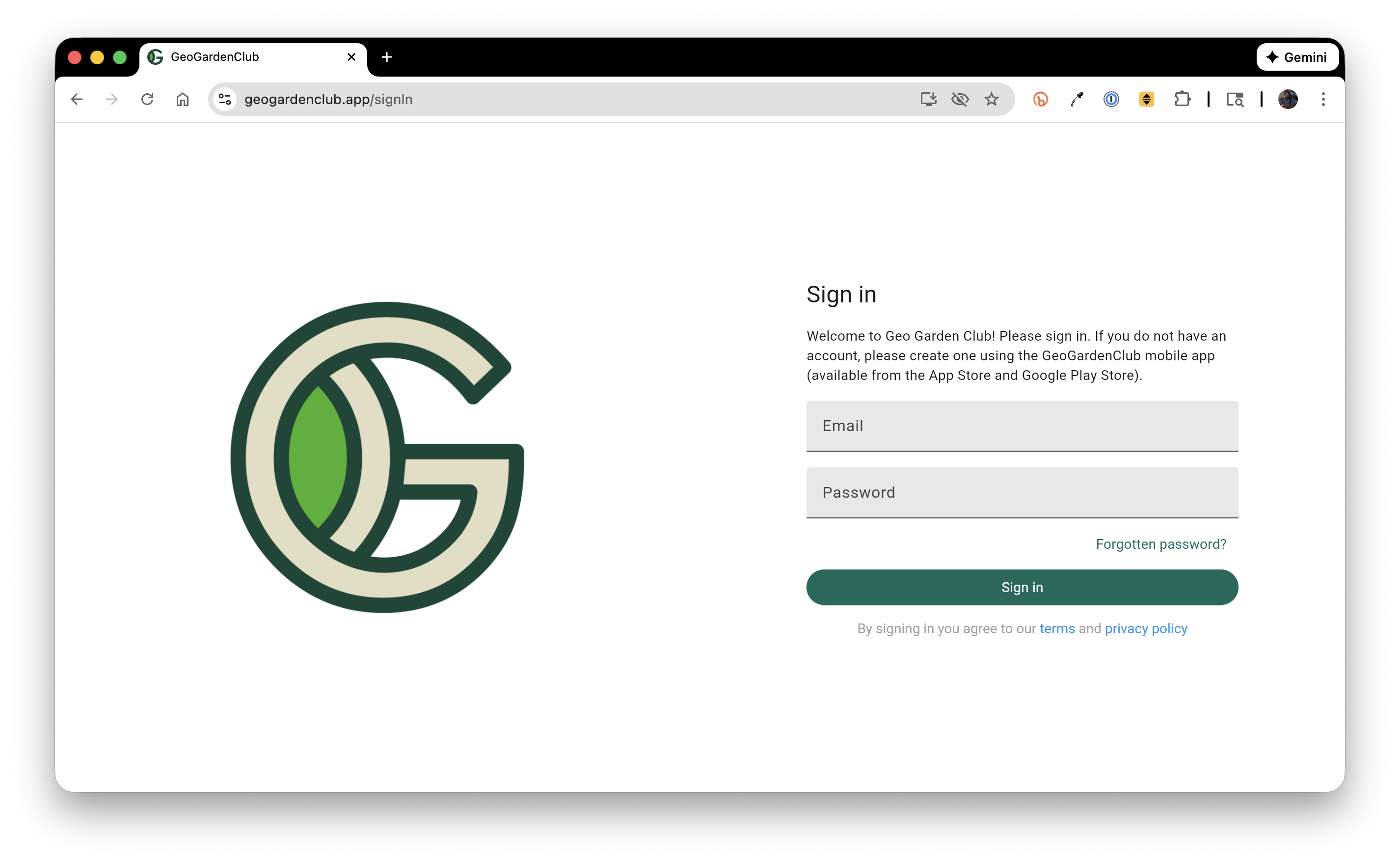 Once you have signed up for GGC using the mobile app, you will be able to access your account via our web app at: https://geogardenclub.app.